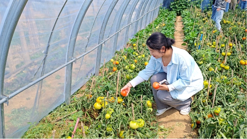 စိတ်အားထက်သန်မှု ပြီးတဲ့အခါကျတော့ သက်တောင့်သက်သာရှိတာပေါ့။ နံနက် 10:30 တွင် သဘာဝတရားနှင့် ရင်းနှီးစွာတွေ့ဆုံရန် Xiazhuang ခရမ်းချဉ်သီးကောက်ဥယျာဉ်သို့ အတူတူသွားကြသည်။ ကြည်လင်သောနေ့ဖြစ်သဖြင့် လယ်ကွင်းများပေါ်တွင် နေရောင်ခြည် ထွန်းတောက်နေလေသည်။ စိမ်းလန်းသော အကိုင်းအခက်များနှင့် အရွက်များကို အနီရောင်တောက်တောက် ၆၉ ခရမ်းချဉ်သီးများဖြင့် ဖုံးအုပ်ထားပြီး အဝိုင်းနှင့် ဖောင်းပွကာ အရောင်တောက်ကာ အဝေးက လူများကို သွားရည်ကျစေသည်။
