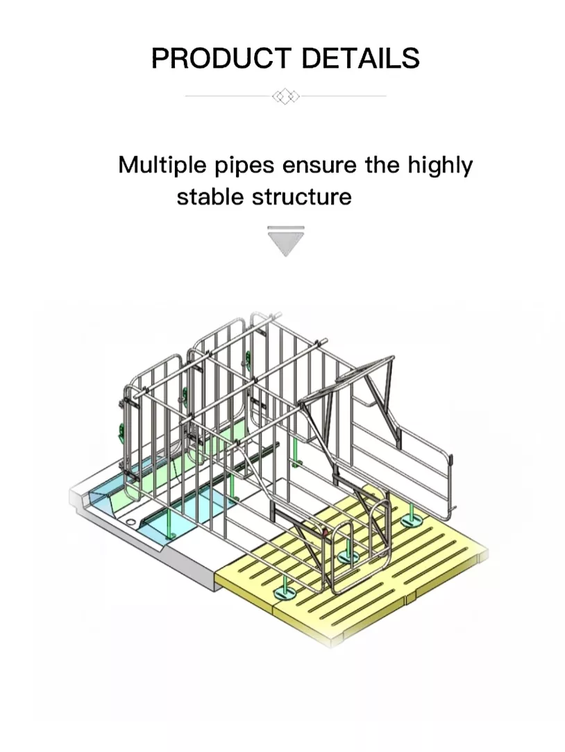 2.Included stainless steel feed troughs များသည် ချေးခံနိုင်ရည်ရှိပြီး သန့်ရှင်းရန် လွယ်ကူပြီး ရေရှည်အသုံးပြုရန်အတွက် တစ်ကိုယ်ရေသန့်ရှင်းမှုကို ထိန်းသိမ်းထားသည်။